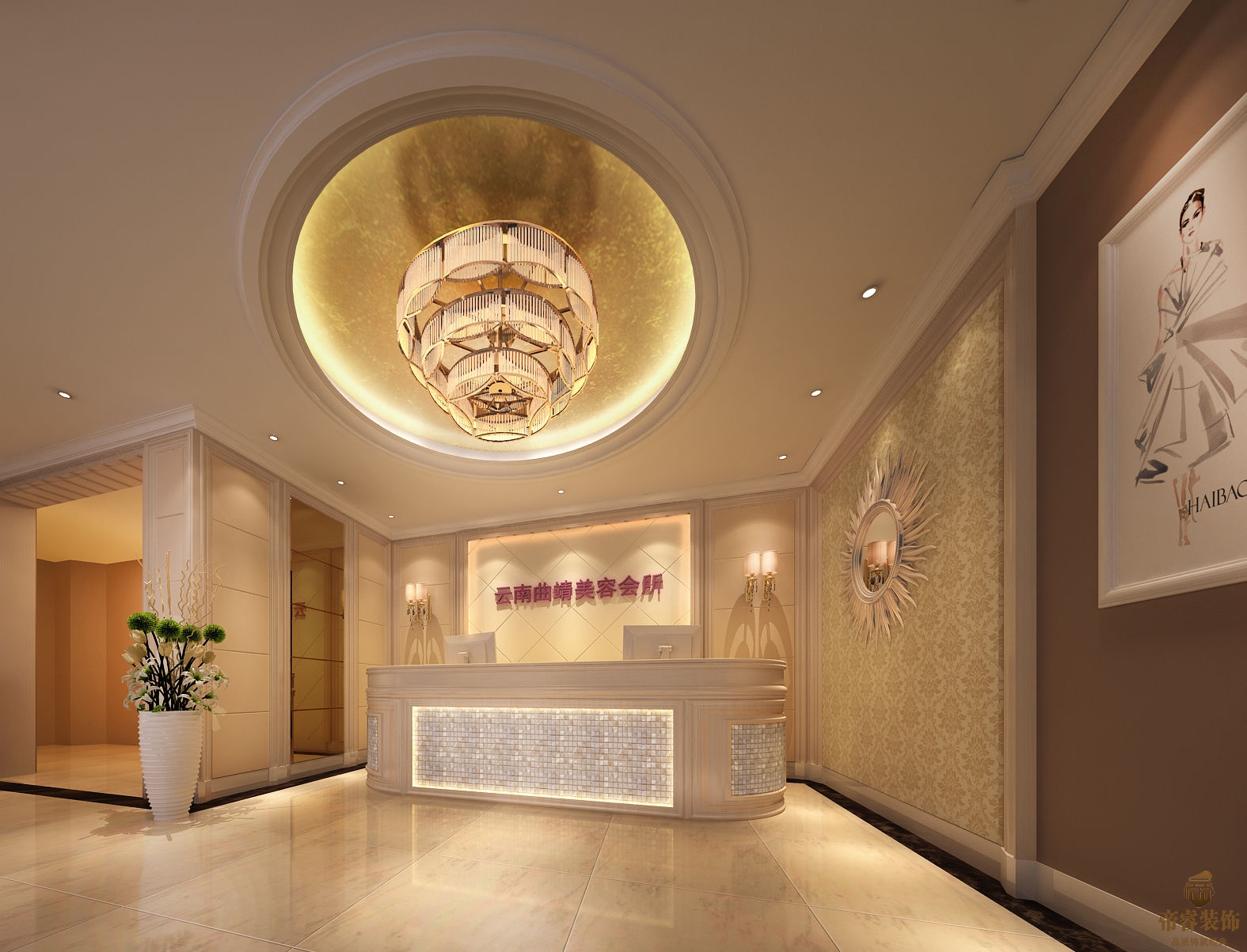 田園風(fēng)格美容院前臺(tái)大廳裝修效果圖